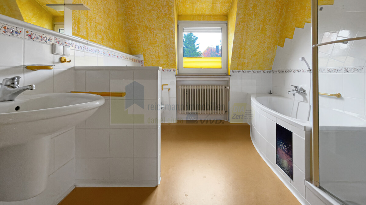 Im Erdgeschoss befindet sich ein eigenständiger Wohnbereich mit Flur, zwei Zimmern, Küche und (Gäste-)Duschbad mit Tageslicht. Das Obergeschoss bietet weitere großzügige Wohnräume sowie ein weiteres Tageslichtbad mit Dusche und Badewanne. Das Dachgeschoss ist derzeit nicht ausgebaut, jedoch bereits gedämmt. Je nach Ausbauvariante lässt sich hier zusätzlicher Wohnraum von etwa 50 bis 60 m² realisieren. Dachflächenfenster wurden im Jahr 2011 eingebaut und bilden eine solide Grundlage für einen späteren Ausbau.