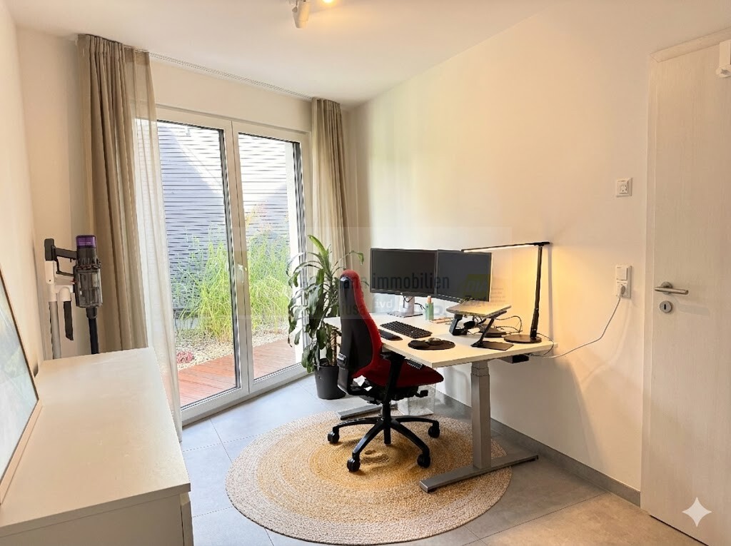 Die Ausstattung der Wohnung ist hochwertig und auf langfristige Nutzung ausgelegt. In allen Räumen ist eine Fußbodenheizung installiert. Die Fenster auf der Südwestseite sind mit elektrischen Jalousien zur optimalen Licht- und Wärmeregulierung ausgestattet, auf der Nordseite befinden sich elektrische Rollläden. In die Wohnung und den Außenbereich wurde in den vergangenen Jahren mit viel Sorgfalt und Qualitätsbewusstsein investiert. Hochwertige Einbauten wie die Terrassenüberdachung mit integrierter Beleuchtung und Markise, individuell gefertigte Schreinermöbel, eine moderne Einbauküche mit Granitsteinplatte und Quooker-Wasserhahn sowie durchdachte Garten-, Sicht- und Beleuchtungslösungen verleihen der Wohnung ihren besonderen Wohncharakter und spürbaren Mehrwert. Der Neupreis dieser Ausstattungs- und Zusatzeinbauten beläuft sich insgesamt auf rund 73.000 Euro. Sämtliche Einbauten sind ebenso wie die Garage und der Stellplatz sind bereits im Kaufpreis enthalten und ermöglichen ein sofortiges Einziehen ohne weiteren Investitionsbedarf.